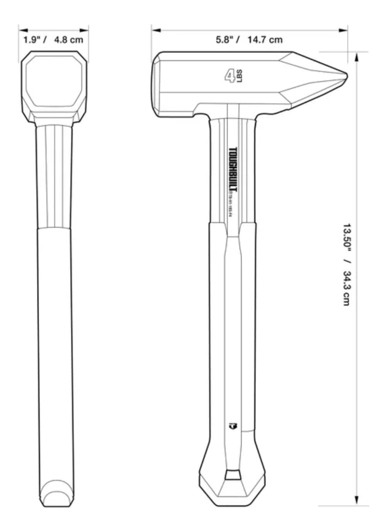 El martillo de herrero de fibra de vidrio ToughBuilt de 1.8 kg está diseñado para dar golpes potentes. Su cabeza de acero templado y forjado con precisión proporciona máxima durabilidad. El mango de fibra de vidrio reduce el peso del martillo y el revestimiento de goma minimiza las vibraciones durante su uso. Con su cabeza de doble filo, el martillo de herrero ToughBuilt de 1.8 kg es esencial para trabajos de metalistería o forja.