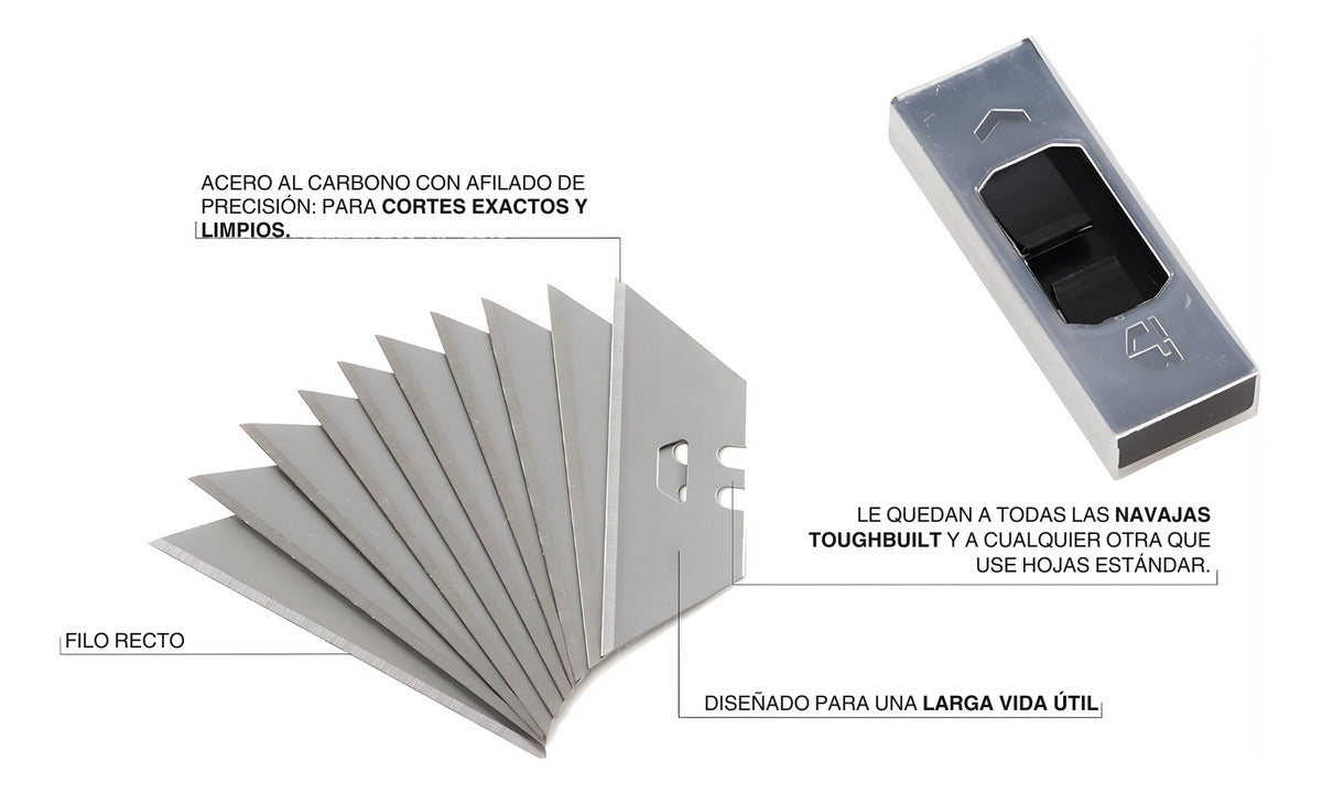 Optimiza tu kit de herramientas con la solución de corte definitiva. Este combo profesional incluye el Cuchillo Multiusos 2 en 1 (TB-H4S5-01) y un Paquete de 30 Cuchillas de Repuesto (TB-H4S30-80), garantizando que siempre tengas el filo y la potencia necesarios para cualquier desafío industrial o doméstico.FICHA TÉCNICAMarca: ToughBuiltModelos incluidos: TB-H4S5-01 (Navaja/Raspador) y TB-H4S30-80 (30 Repuestos)Funciones: 2 en 1 (Navaja multiusos y Raspador profesional)Material de cuchillas: Acero al carbono pulido de alta precisiónCantidad total de hojas: 35 cuchillas (5 incluidas en la navaja + paquete de 30)Extras: Mango ergonómico, abrelatas de pintura y orificio para cordónCARACTERÍSTICAS PRINCIPALESMecanismo Patentado 2 en 1: Transforma la navaja en un raspador profesional con solo presionar el pulgar, permitiéndote alternar entre cortar y limpiar superficies sin cambiar de herramienta.Cuchillas de Acero al Carbono de Alto Rendimiento: Fabricadas para resistir el desgaste extremo, estas hojas proporcionan cortes limpios y precisos en materiales densos como alfombras, vinilo, caucho y paneles de yeso.Mango Ergonómico Antideslizante: El diseño robusto con agarre de goma y cresta protectora garantiza firmeza total y seguridad, reduciendo la fatiga durante jornadas de uso intenso.Sistema de Cambio Rápido Universal: Reemplaza las hojas en segundos con el botón de liberación; compatible con la mayoría de las cuchillas multiusos estándar del mercado para mayor versatilidad.Multifuncionalidad Integrada: Incluye un práctico abrelatas de pintura en la parte posterior, convirtiéndose en la herramienta esencial para pintores, instaladores de pisos y contratistas generales.¿Cansado de cargar múltiples herramientas o de lidiar con hojas que pierden el filo a mitad del trabajo? La eficiencia en la obra depende de tener equipo que se adapte a tus necesidades y que nunca te deje a medio camino por falta de consumibles.El cuchillo Scraper ToughBuilt TB-H4S5-01 es la respuesta a los trabajos más exigentes. En modo raspador, elimina pintura, masilla y adhesivos en ventanas o azulejos sin esfuerzo. En modo navaja, corta cartón, cuerdas y plástico con una precisión quirúrgica. Al incluir el paquete de 30 repuestos de acero al carbono, aseguras meses de productividad ininterrumpida con el respaldo de la calidad americana.Imagina la fluidez de trabajar con una herramienta que se siente como una extensión de tu mano, sabiendo que tienes el repuesto exacto siempre a tu disposición. Al elegir ToughBuilt, proyectas la seriedad de un experto que invierte en durabilidad y rendimiento superior.Lleva tu productividad al siguiente nivel hoy mismo. Como Tienda Oficial y Mercado Líder Platinum, garantizamos que recibes un producto original con el respaldo de los mejores especialistas. ¡Haz clic en comprar ahora y experimenta la versatilidad total!::: INFORMACIÓN :::SOMOS TIENDA OFICIAL PARA FERRETERÍA Y HERRAMIENTA Mercado Líder Platinum, uno de los mejores vendedores de la plataforma por nuestra trayectoria y experiencia en el rubro.Productos originales certificados.Distribuidor experto autorizado.::: FACTURACIÓN :::Contamos con FACTURACIÓN electrónica SIN COSTO extra.Nuestros precios publicados incluyen IVA.Para tu mayor comodidad, todas tus compras se ingresan en una sola factura.::: MEDIOS DE ENVÍO :::Envíos a todo el País a través de Mercado Envíos o Estafeta.Costos y tiempos de envío sujetos a zona geográfica.::: GARANTÍA :::Nuestros productos son 100% originales.Cuentan con garantía por defecto de fábrica real (no aplica por mal manejo o abuso de la herramienta).::: COMPRA PROTEGIDA :::Con el programa de Compra Protegida de Mercado Libre, tu dinero está seguro en cada momento.::: ¿CÓMO COMPRAR FÁCIL Y RÁPIDO? :::Seleccionas tu producto y la cantidad que quieres comprar.Una vez que hayas resuelto todas tus dudas das clic en el botón 'COMPRAR'.Realizas tu pago y esperas la acreditación del mismo.Se inicia el proceso de envío y esperas hasta que llegue a tu domicilio.Calificas tu experiencia de compra con nosotros.